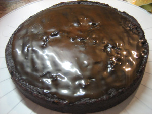 The cake itself is rich and chocolatey, the exact opposite of what a boxed chocolate cake mix tastes like (which is nothing). The icing is richer than rich, and I might even say too rich for me. I don’t think I whipped it enough either, but when there’s *spoiler alert* a pound each of butter and chocolate involved, I don’t think fluffiness is on anyone’s mind! I decorated the cake with chocolate covered caramels which I picked up at Bulk Barn, and it was a delicious first course at my 1st blog-iversary party. Yeah that’s right, first course.