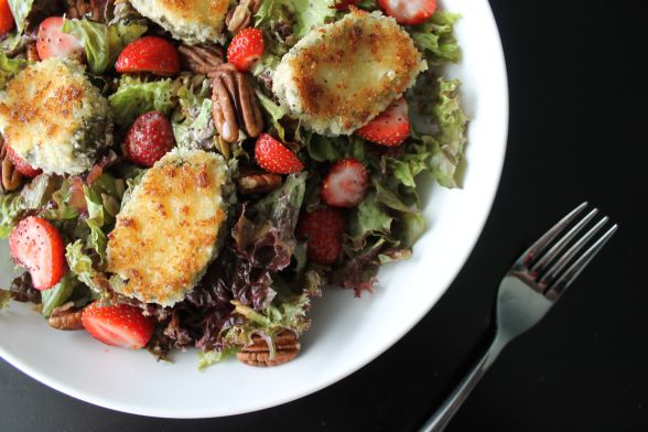 I decided to make this at home a couple weeks ago, with a handful of my last precious Ontario strawberries tossed in. I also FRIED THE CHEESE because why wouldn’t you? The whole salad gets drizzled with a tasty poppy seed dressing. This is the kind of thing I would make once a year and then forget about, so of course I’m documenting it here.