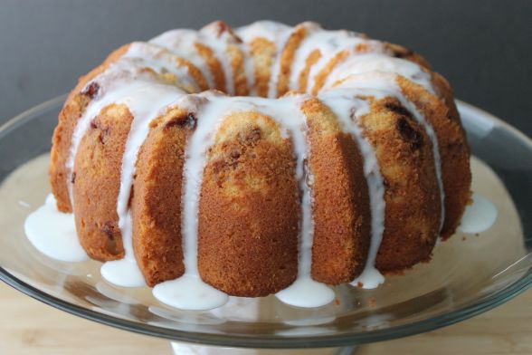 - Let cool for 30 minutes in the pan then invert onto a cooling rack to cool completely. Drizzle glaze overtop.