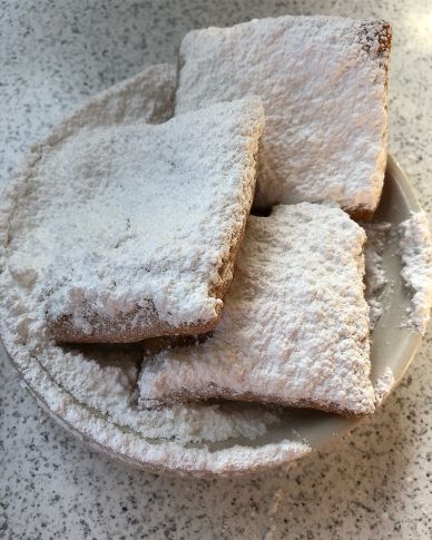 - Café du Monde: There was no way our first stop would be anything other than Café du Monde for beignets. There are couple locations, but we went to the original on the edge of the French Quarter. It’s a bit chaotic, and there’s icing sugar covering every surface, but the first bite into a warm beignet makes it absolutely worth it. Beignets are little squares of fried dough that are served warm, with about a half an inch of icing sugar on top, and were the perfect way to begin our trip. I also had a Café au Lait to complete my first NOLA eating experience. We didn’t have to wait in line, but I think they’re usually super busy, and they only take cash. Bring wet wipes, and know you can’t avoid leaving without icing sugar in your hair.