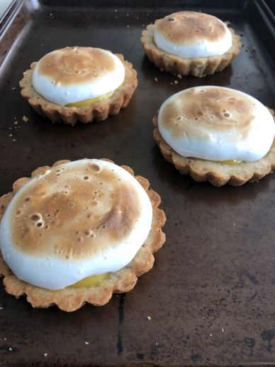 The Baked Boys note in the recipe that the pastry is very delicate and soft, so instead of rolling it out, I just divided it into four pieces (I made 1/2 the recipe) and pressed it into my mini tart pans. I only ran into issues when it came to the marshmallow/meringue topping, which never reached stiff peaks for me (also something I’ve had issues with in the past), so I just scooped it on and toasted it with my little kitchen torch.