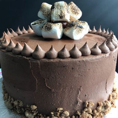 - My friend Jen moved to Switzerland! I’m so excited and happy for her, but I was very sad to say goodbye. For her epic farewell party, I made a Campfire Cake (pictured above), which somehow managed to serve 50+ people (I used this slicing method). It’s three layers of chocolate cake, toasted marshmallow filling and chocolate malt frosting. The only change I made to the original recipe was to make Graham Crumbles and add them between the layers and on the outside of the cake as a decorative border. Everyone loved it and I’ve never heard the word MOIST so much in my life.