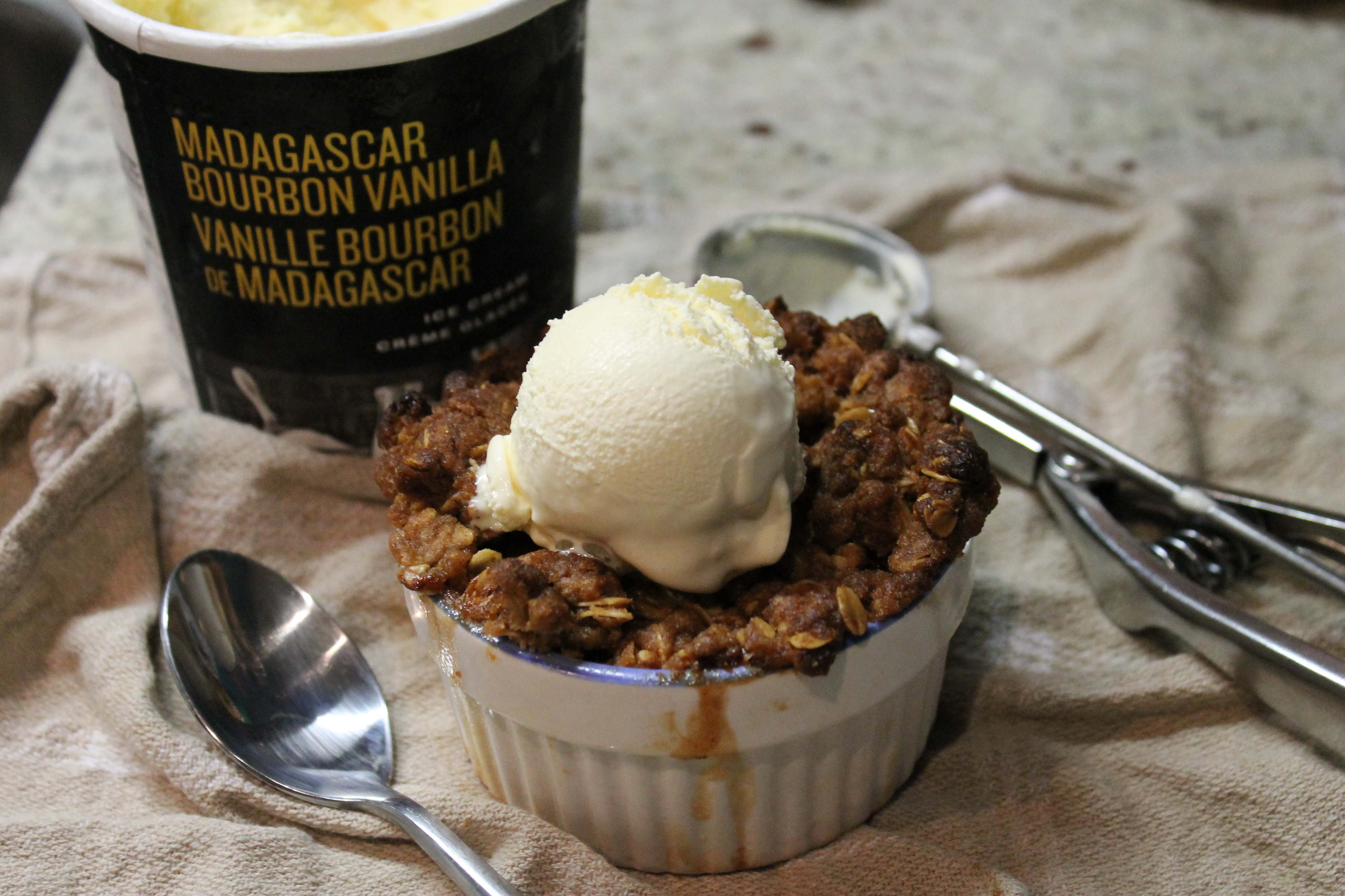 - Serve warm with vanilla ice cream. Heavenly.