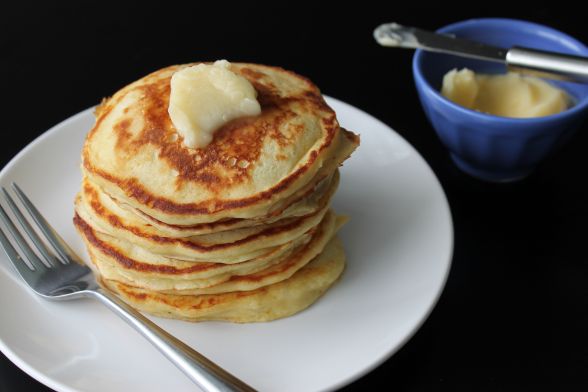 These pancakes are mixed up with the usual suspects, but also orange juice, orange zest and some greek yogurt. The star for me is really the honey butter. The boys recommend eating these with copious amount of it, leaving off maple syrup altogether (good news for me, as I was out). I can’t say they’re going to become my go-to pancake (I already have My Favourite), but they were still a nice breakfast.