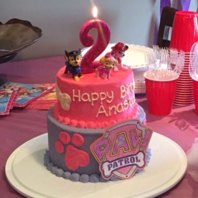 - Kristine’s friends Justin and Masha asked me to make a Paw Patrol cake for their daughter’s 2nd birthday (pictured above). It was a 8” chocolate cake on the bottom and a 6” funfetti cake on the top, and I copied the design from a cake Masha saw on Pinterest. Stacking the layers stressed me out, as well as the paw prints and dog bone decorations, but in the end I was happy with how it turned out, and the birthday girl loved it.